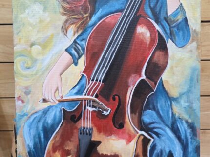 Lost in the Strings" is more than a portrait; it is an invitation to witness the silent conversation between a musician and her instrument, a tribute to the introspective power and emotional depth of music.Painted on a 16x24" pre-primed canvas, secured with Medium Gloss varnish. No Prints available.