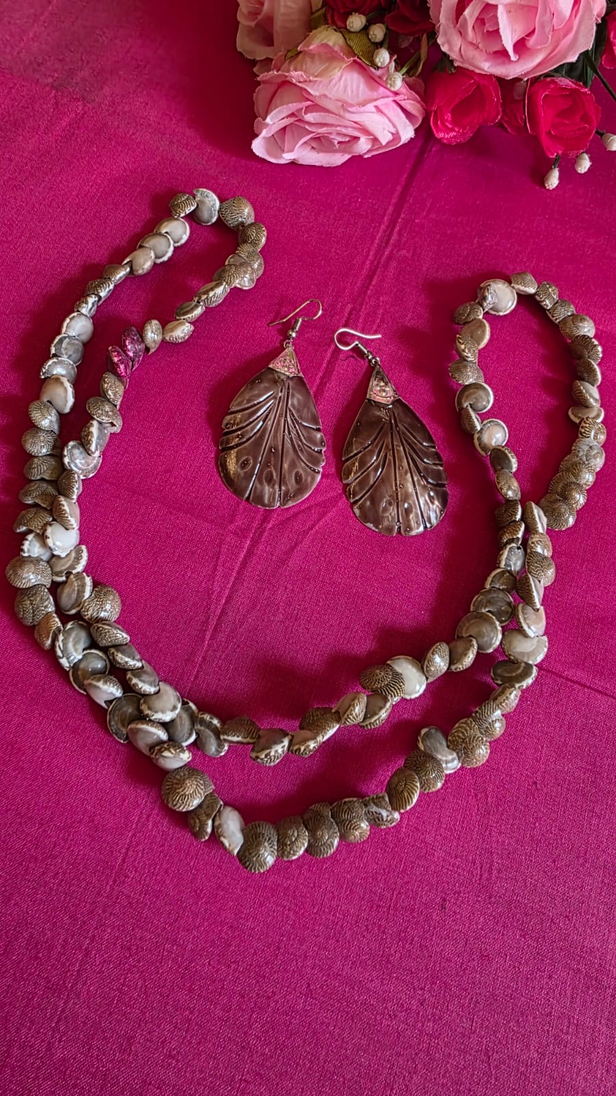 Sea-shell Necklace – Earrings set combo ( Brown)