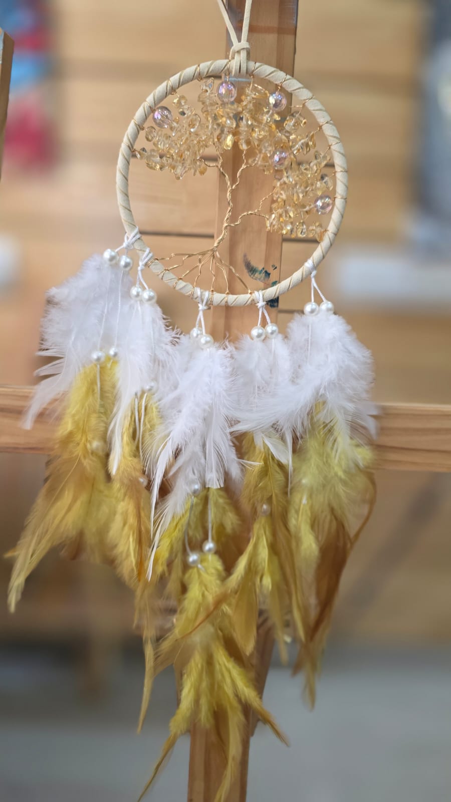 Tree of Life Dreamcatcher | Crystals | White & Golden Yellow | 6 inch