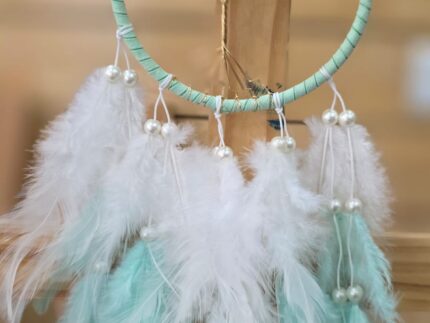 The Beautiful Dream Catcher makes an ideal gift for friends and family who appreciate meaningful decor with protective qualities. It’s perfect for housewarmings, birthdays, or occasions where a thoughtful, protective charm is appreciated.   Color:– White & Light Green Material:– Feather, Metal, ABS Plastic Granules, stones Style:–  Modern Quantity:-  3 in Stocks Including Components:- Cord, and String Shape:- Round Mounting type:–  Hanging  The price mentioned above is for each piece.