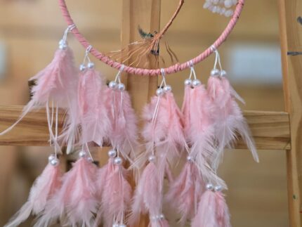 The Beautiful Dream Catcher makes an ideal gift for friends and family who appreciate meaningful decor with protective qualities. It’s perfect for housewarmings, birthdays, or occasions where a thoughtful, protective charm is appreciated.   Color:– Bright Pink Material:– Feather, Metal, ABS Plastic Granules, stones Style:–  Modern Quantity:-  3 in Stocks Including Components:- Cord, and String Shape:- Round Mounting type:–  Hanging  The price mentioned above is for each piece.